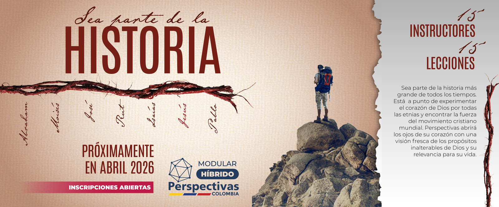 Un curso que desarrolla visión. Provee el contexto y la motivación para la pasión, dirección, transformación y el sacrificio. Los alumnos experimentan un cambio de paradigma, de un enfoque egocéntrico a un enfoque centrado en Dios. Perspectivas es un curso acerca de los propósitos eternos de Dios y su deseo de ser conocido y glorificado por todas las naciones, lenguas, tribus y pueblos del mundo.